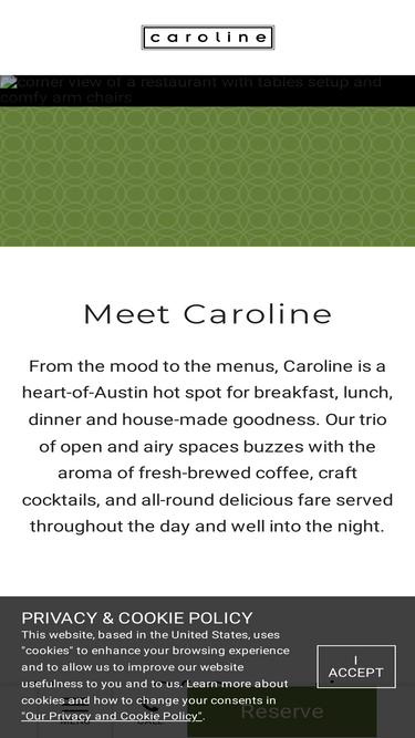 86%Located in the heart of Austin TX's central district, Caroline is a great place to kickstart your morning or enjoy a glass of wine, cocktail, or all-day menu.