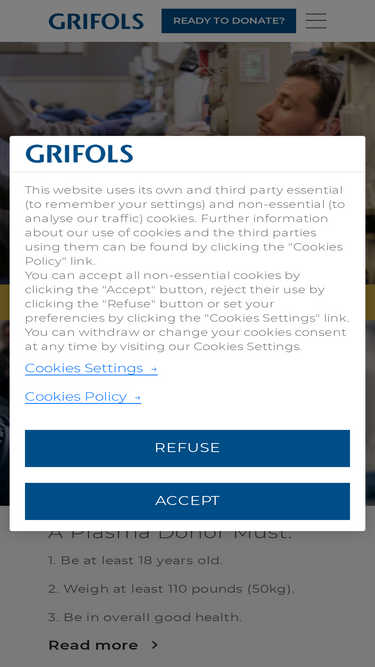 97%Haga que su primera donación de plasma sea un éxito. Conozca como funciona el proceso de donación de plasma y qué puede esperar en un centro de donación de plasma de Grifols