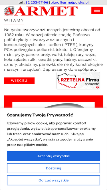 78%ARMET Tworzywa Sztuczne | Al. Roździeńskiego 190b | 40-203 Katowice | tel./fax: 32 203 97 76 | kom. 604 498 100 I e-mail: biuro@armetpolska.pl