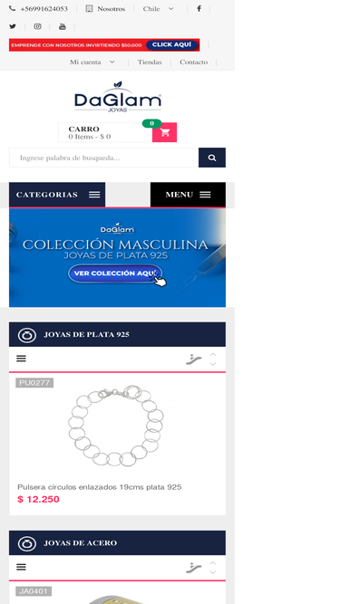 96%joyerias daglam: joyas de plata, collares, insumos de joyeria. venta de joyas de acero en chile. anillos , aros, cadenas, colgantes, pulseras, collares. joyas de oro, joyas de plata