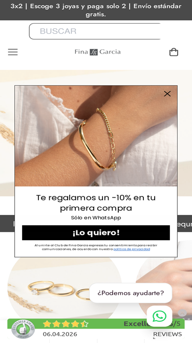 86%Una joya de Fina García por San Valentín Llega San Valentín y todos queremos sorprender a nuestras parejas. Desde Fina García te proponemos regalar una joya este próximo 14 de Febrero para volver a enamorar a esa persona tan especial. Es una fecha mágica, donde cualquiera está deseando ser sorprendido por su gran amor. Vuélvete a enamorar como el primer día ¿Quién no quiere una joya por San Valentín? Regala exclusividad y piezas únicas al amor de tu vida, porque en Fina García disponemos de una amplia selección de joyas para él y para ella. Desde collares y pendiente hasta pulseras o anillos, todo lo que busques lo puedes encontrar en nuestras joyerías físicas o en nuestro catálogo online.
