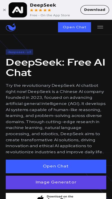 100%Makipag-chat sa DeepSeek AI nang libre! Ang DeepSeek ay isang AI-powered na app na sumasagot sa mga tanong, gumagawa ng content, at naglulutos ng mga problema nang agarang.