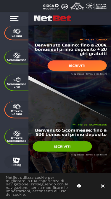 85%scommettere su netbet con 200€ di bonus, tantissimi eventi ed un ricco palinsesto, in più gioca al casinò con un incredibile bonus fino a 1000€, anche dal tuo smartphone.