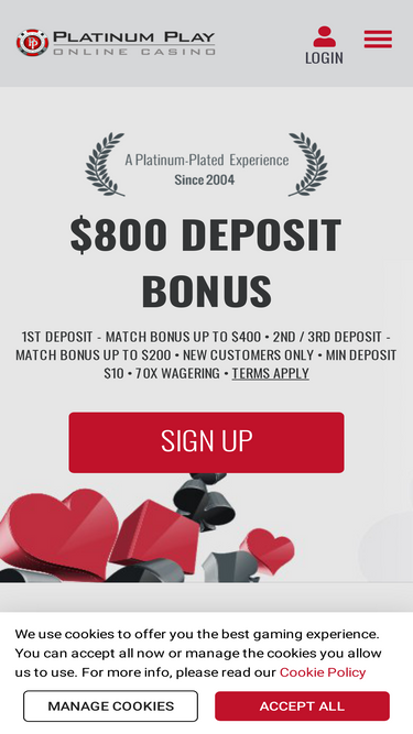 When you register an account and make a deposit, you instantly join the Platinum Play Loyalty Rewards programme and earn 2,500 Rewards points.