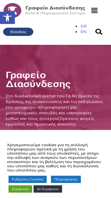 59%Τι είναι το Γραφείο Διασύνδεσης και ποια είναι η αποστολή του;Lorem ipsum dolor sit amet, consectetur adipisicing elit. Optio, neque qui velit. Magni dolorum quidem ipsam eligendi, totam, facilis laudantium cum accusamus ullam voluptatibus commodi numquam, error, est. Ea, consequatur. Ποιες υπηρεσίες παρέχει το Γραφείο Διασύνδεσης στους φοιτητές του ιδρύματος;Lorem ipsum dolor sit amet, consectetur