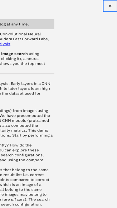 80%An Interactive Visualization for exploring Convolutional Neural Networks applied to the task of semantic image search. A prototype built by Cloudera Fast Forward Labs.
