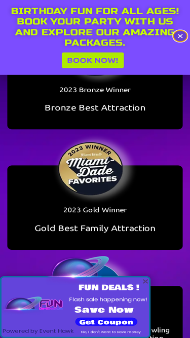 100%Celebrate special moments with unforgettable birthday events in Miami at Fun Dimension! Immerse yourself in excitement with thrilling activities and create lasting memories in a dimension of fun. Book your unique birthday experience today.