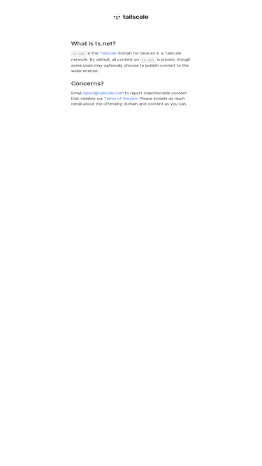 98%Tailscale values and respects your privacy. We've prepared this privacy policy to explain the manner in which we collect, use and disclose personal information through your use of Tailscale. Please contact us if you have any questions.
