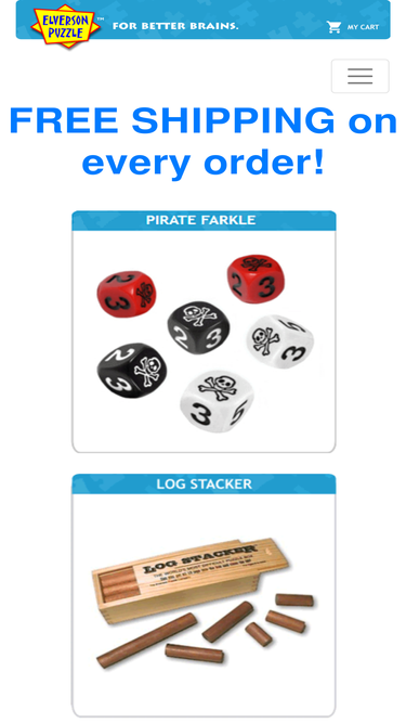 87%welcome to elverson puzzle - makers of award-winning brain teasers and mind games, including jacob's revenge bottle puzzle, log stacker puzzle box, rgb round-up tangram puzzle, dice stacker dice puzzle, gold spike sudoku board game, sudoku royale board game, and pirate farkle dice game.
