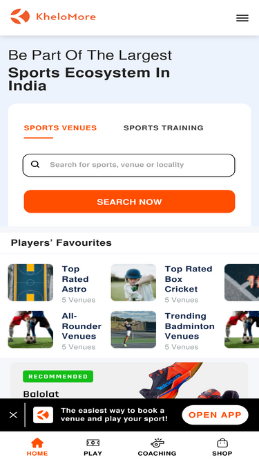 Book sports venues, coaching, and events with KheloMore. Explore courts, turfs, and play zones near you. Enjoy easy booking, great offers, and expert coaching!