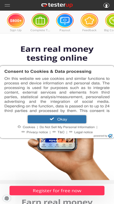 78%Register now free of charge on testerup and receive regular invitations to paid product tests, website tests, app tests and online surveys.