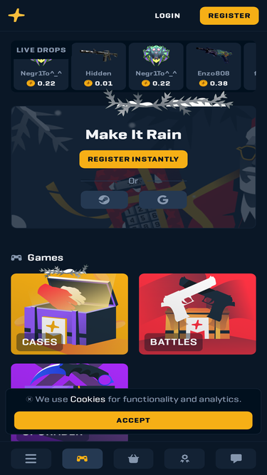 100%Welcome to Rain.gg. Explore CS2 (CS:GO) Cases, Battles, Double and more. Access free daily, weekly and monthly rewards when you sign up.