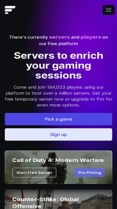 99%free game server hosting for cs2, cod4, cod2, cs1.6, css, and more! we also offer paid game servers via pro.