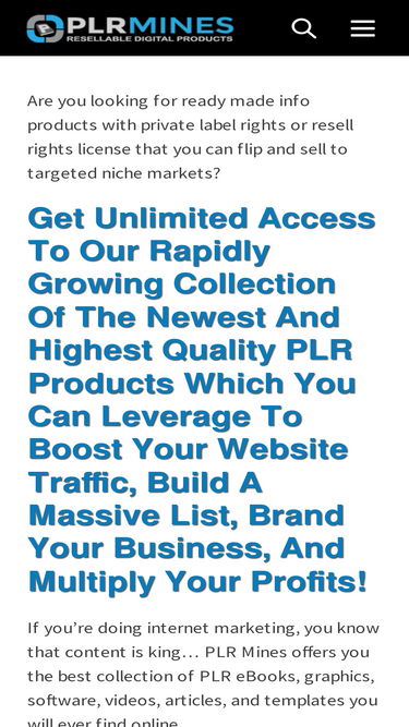 100%PLR Mines offers high quality PLR products you can sell: eBooks, videos, graphics, templates, software and turnkey sites with resell, master resale and private label rights.