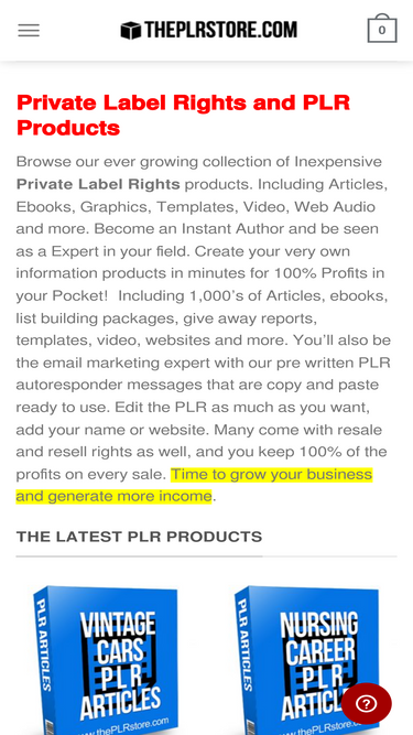 94%private label rights and plr products including articles, autoresponder email messages, ebooks, list building videos, turnkey websites, all digital products.