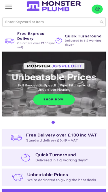 87%monster plumb has over 50 years experience in the heating and plumbing industry. we stock reputable brands of home heating supplies and plumbing supplies with free express delivery.