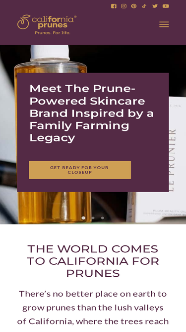 100%California Prunes are naturally nutritious, low glycemic fruit full of antioxidants and fiber that promote health.