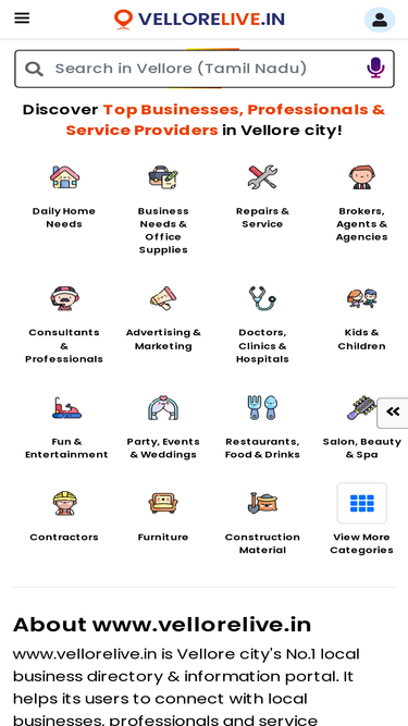 List your Business for FREE on www.vellorelive.in - No. 1 Local Search Engine & Online Business Directory of Vellore. Grow your Business by creating a strong online presence for your business on www.vellorelive.in & start connecting with new customers immediately.
