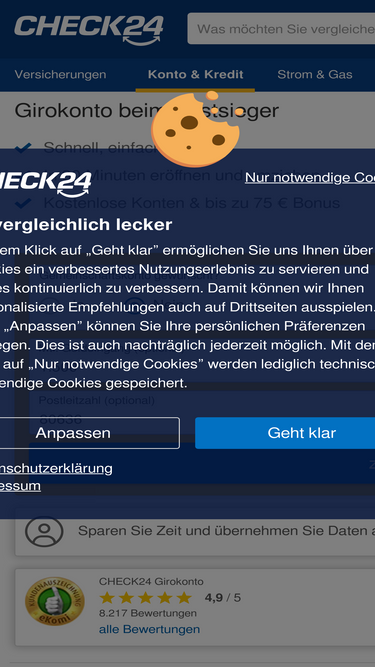 87%CHECK24 - Das Vergleichsportal: Sparen Sie mit den Vergleichsrechnern für Versicherungen, Kredite, Energie, DSL, Reisen, Flüge und mehr.