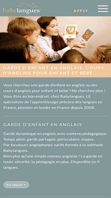 79%Garde d'enfants en anglais grâce au n°1. Choisissez une nounou bilingue ou une baby-sitter anglaise pour des cours d'anglais pour enfant/bébé