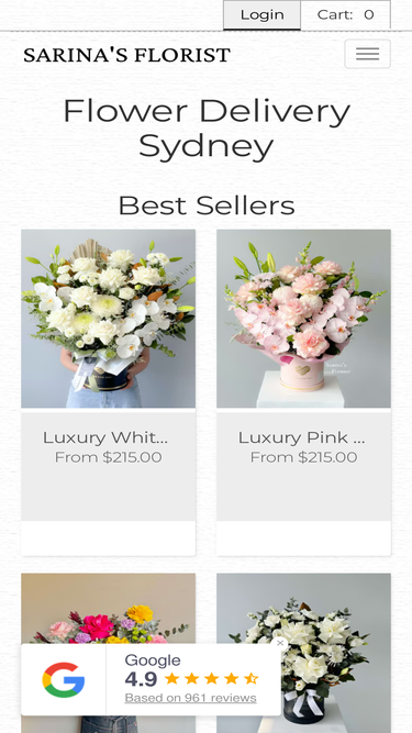 95%Sarinas Florist is centrally located in Eastgardens shopping centre and delivers across Sydney 7 days a week. From Budget to Premium Gift Options