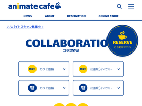 87%アニメイトカフェの公式ホームページです。人気アニメ・ゲーム作品のコラボレーションカフェ(コラボカフェ)を全国で展開しています。イベント情報、ご予約、ご利用方法、店舗情報、企業情報などを掲載しています。