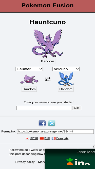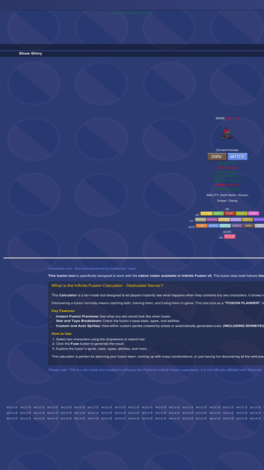 pokémon infinite fusion dex. filter fusions by pokémon, artist, types, abilities, and moves.