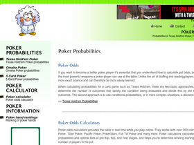 80%online poker probabilities, statistics, outs and odds calculator. download software or use free online tools to calculate your statistics live while playing texas hold'em or omaha.
