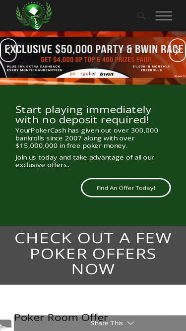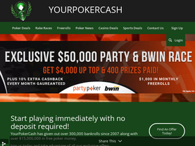 YourPokerCash gives new poker players no deposit bonuses, bankrolls, freerolls, rake races. The best reviews on poker rooms and many exclusive offers.