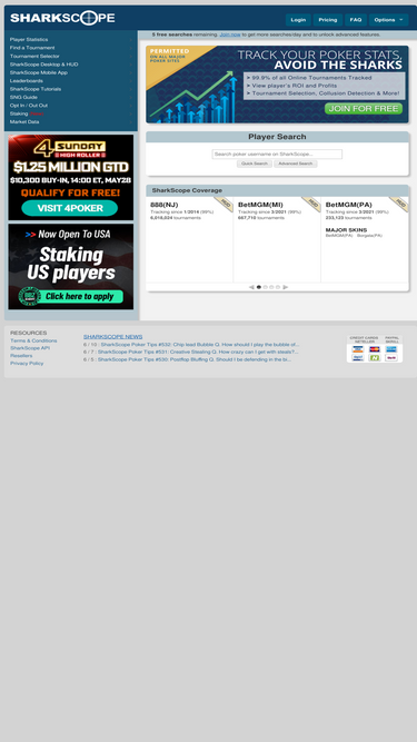 track your poker statistics and avoid the sharks. sharkscope is the most complete database of poker tournament results available and covers virtually all online poker sites.