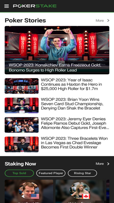 99%Welcome to PokerStake, the best place to buy and sell poker tournament stake. PokerStake provides stakings of the best poker players, live news of poker world, and various communities for poker fans.