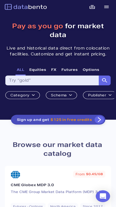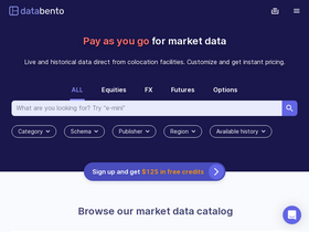 80%Databento provides real-time and historical market data APIs. Access data for equities, futures, options, and more with one integration. Sign up for $125 in free credits.