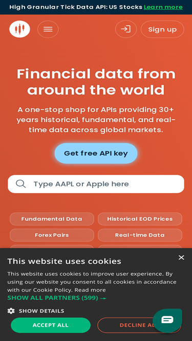 93%Financial Data APIs. Fundamental, End of Day (EOD), Real-Time/Live.
