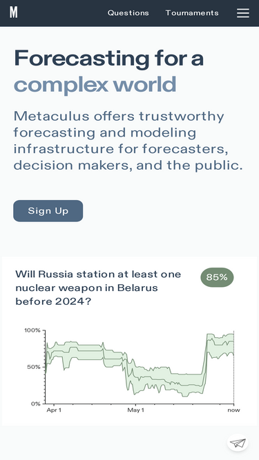 92%Metaculus is an online forecasting platform and aggregation engine working to improve human reasoning and coordination on topics of global importance.