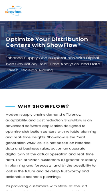 51%showflow simulation software. affordable manufacturing, logistics and business simulation software including 3d animation, report writer, probability functions, experimentation module and dynamics data links to microsoft excel.