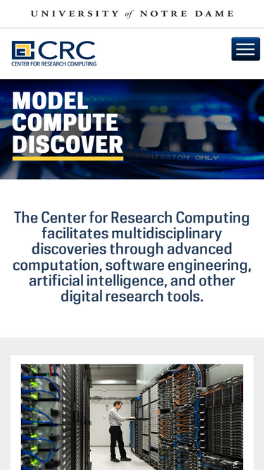 100%The Center for Research Computing facilitates multidisciplinary discoveries through advanced computation, software engineering, data analysis, and other digital research tools.
