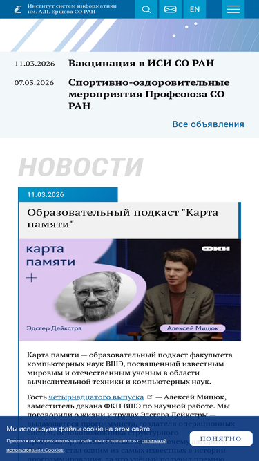73%институт систем информатики имени а.п. ершова со ран — институт сибирского отделения российской академии наук, организованный в 1990 году. расположен в новосибирском академгородке. основными направлениями научных исследований являются теоретические и методологические основы создания систем информатики.