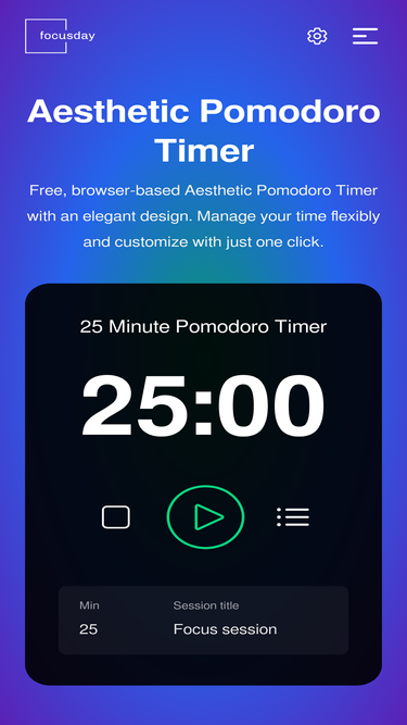 88%Free, browser-based Aesthetic Pomodoro Timer with an elegant design. Manage your time flexibly and customize with just one click.