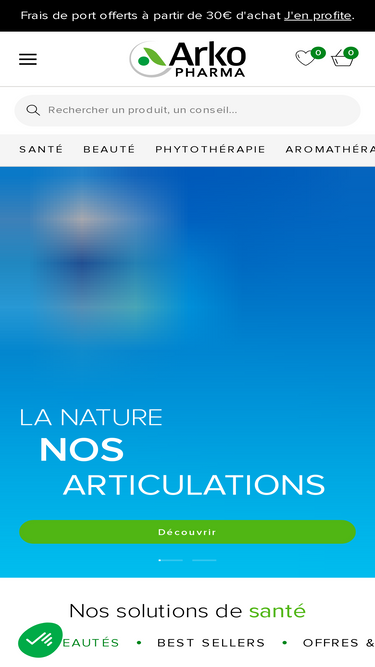 93%Le site internet https://fr.arkopharma.com (ci-après le « Site ») est le site de e-commerce de la société Laboratoires Arkopharma SAS (ci-après “ARKOPHARMA”) destiné à la vente en ligne en France de ses produits. Le recueil préalable de vos données personnelles est indispensable afin de vous permettre d’accéder au Si