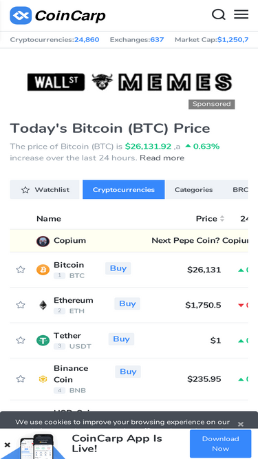 96%CoinPaprika is a Cryptocurrency Market Research Platform. We deliver data from over 25 000 Cryptocurrency Markets. Check the latest Cryptocurrency Prices, Graphs, Cryptocurrency Exchanges ATH, Developer Teams, Community Statistics, Coin Market Caps.