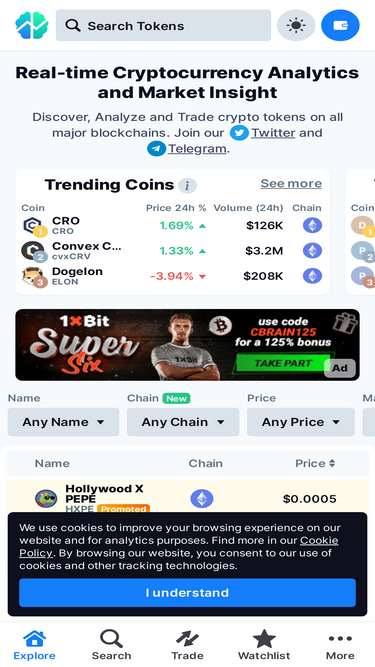 100%Get real-time cryptocurrency prices and market data. Discover what are the top new coins to buy and what crypto tokens are trending. Watch DEX coins live!