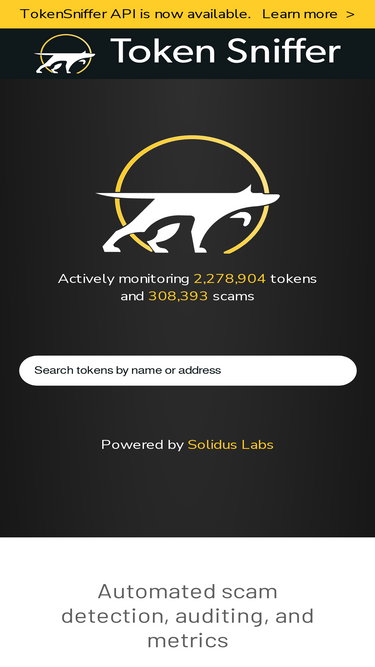 94%token sniffer is a smart contract scam scanner monitoring over two million tokens and 250,000 scams. scan any fungible token on ethereum, polygon, bnb chain, or other blockchain to better understand the risks.