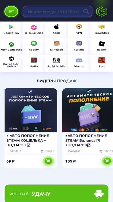 85%Тысячи цифровых товаров по низким ценам с быстрой доставкой и безопасными сделками на ggsel! Приобретайте аккаунты, ключи и гифты. Мгновенное пополнение баланса, покупка подписок и лицензий для ПО.