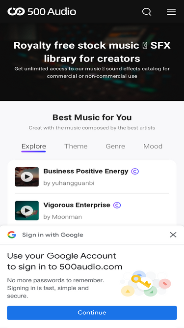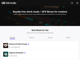 68%500Audio provides 100% royalty-free stock music for youtube, video, games and other commercial use for media creators. Enjoy unlimited downloads of 100,000+ copyright-safe music and 20,000+ sound effects at 500audio.com.