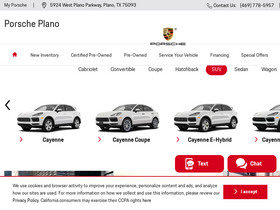 91%Porsche Plano is your premier Porsche Center serving the Plano, Dallas, Irving, and Carrolton areas. Shop new and used cars for sale or schedule service.