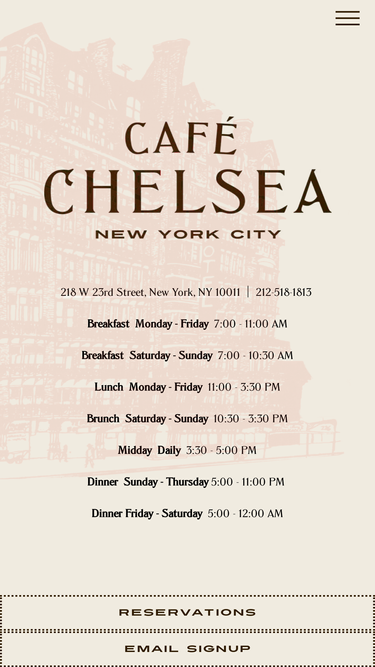Cafe Chelsea is a French American bistro located within the historic Hotel Chelsea in Manhattan, NY.