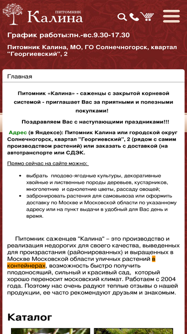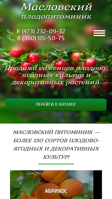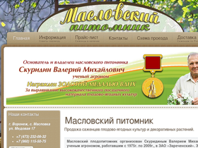 100%масловский питомник - выращивание и продажа сортов плодово-ягодных и декоративных культур для центральной и центрально-черноземной областей. в нашем питомнике вы можете купить саженцы яблонь более 35-ти сортов на слаборослом подвое и саженцы груш более 10 сортов на слаборослом и сильнорослом подвоях, вишни, черешни, сливы, алычи, персика, смородины (черной, красной и белой), крыжовника (разных сортов), жимолости, малины, земляники, а так же саженцы декоративных кустарников (жасмин, розы, кизильник «блестящий», спиреи, магонии «падуболистной» и т.д.).