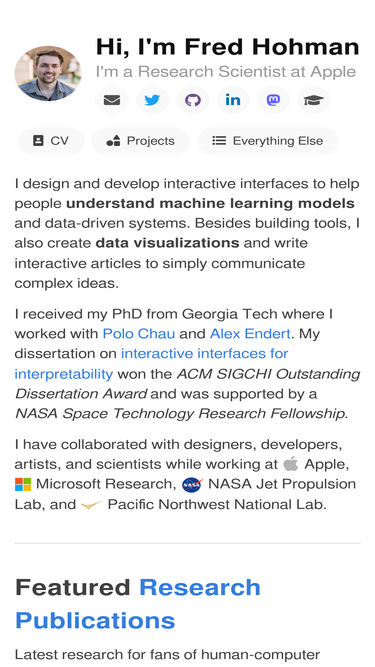 68%Fred Hohman is a Research Scientist at Apple creating interactive interfaces and data visualizations for machine learning.
