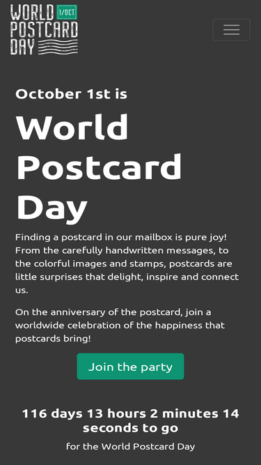 100%World Postcard Day (October 1st) - Celebrate the postcard day by sending a postcard to someone!