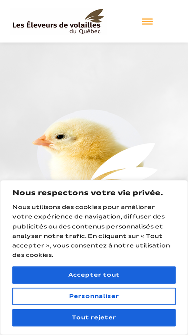 97%Les Éleveurs de volaille du Québec, c’est une organisation qui représente près de 700 éleveurs et éleveuses de poulets et de dindons partout au Québec.